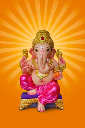 Hindu God Ganesha. Ganesha Idol on yellow background