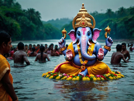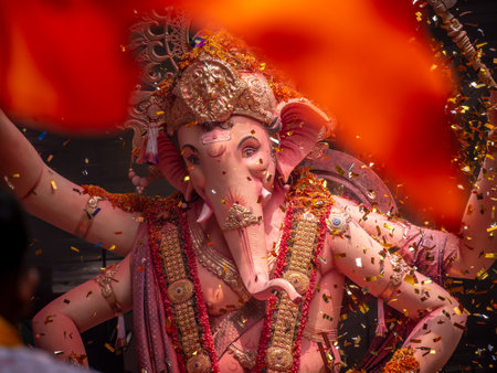 Celebrating ganesh chaturthi festival mumbai cultural event festive environment close-up view devotion concept