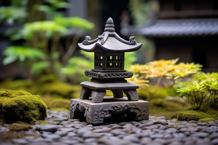 traditional japanese stone lantern in a zen garden, created with generative ai