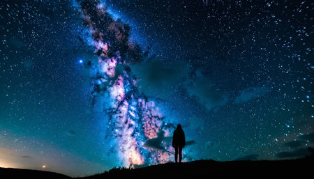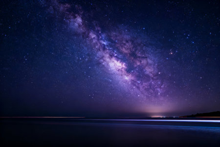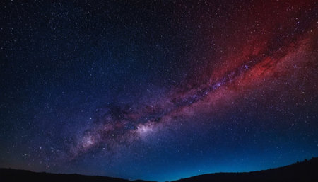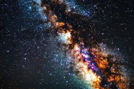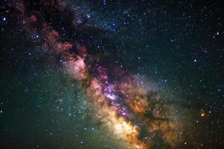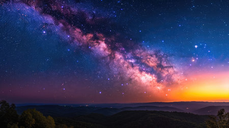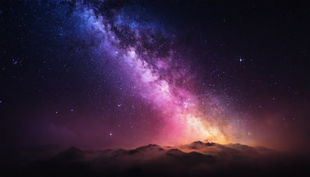 Vibrant colors and stars illuminate the milky way galaxy in the night sky