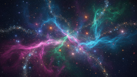 Beautiful cosmic scene featuring vibrant colors and countless stars in a vast night sky. Perfect for showcasing the wonders of the universe and exploration themes.