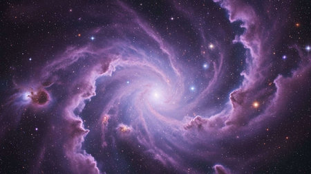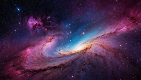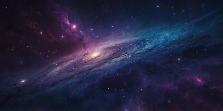 A breathtaking view of a vast cosmic galaxy with swirling colors and illuminating stars, showcasing the beauty and mystery of deep space.