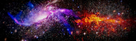 Nebula night starry sky in rainbow colors. Multicolor outer space. Star field and nebula in deep space many light years far from planet Earth.