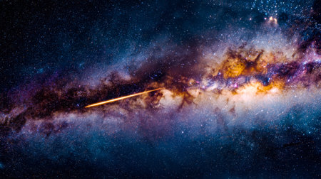 Shooting star with a bright trail passing through the Milky Way, with distant galaxies and colorful stardust generative ai