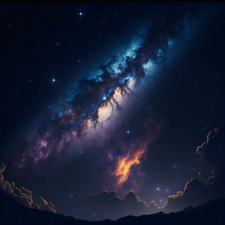 Night scenery with colorful and light yellow Milky Way Full of stars in the sky in summer Beautiful universe Background of space