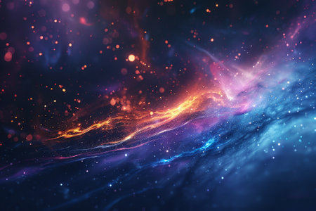 Vibrant abstract background displaying spiritual energy with swirling colors and glowing particles, evoking a sense of cosmic connection and tranquility