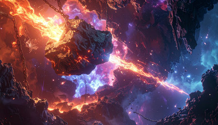 AI Generated. Cosmic Asteroid Collision Stunning Space Art Nebula Wallpaper