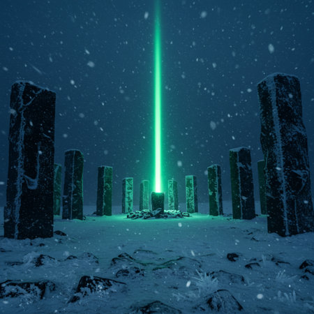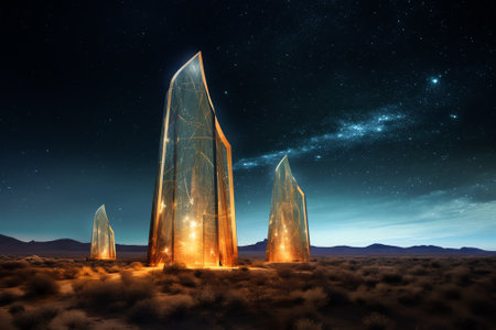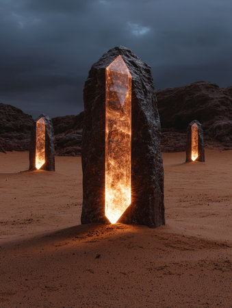 Mystical monoliths glow in a surreal desert landscape.