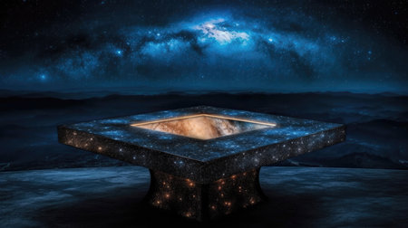 Table With A Starry Background In The Style Of Book Art Installations
