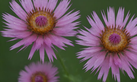 pink flowers in the meadow, closeup of a flower