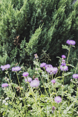 Purple flowers of the Aster family Asteraceae close-up.
