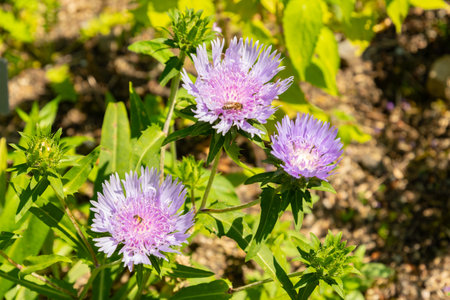 Zurich, Switzerland, July 21, 2024 Stokesia Laevis or stokes aster plant at the botanical garden