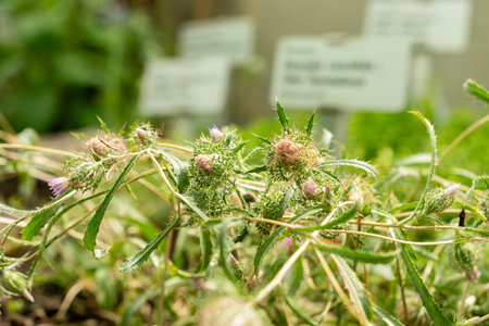 Thistle flower and buds thriving in a landscaped urban park