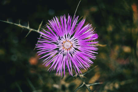 Detail of an isolated purple flower of galactites tomentosa centered in the picture