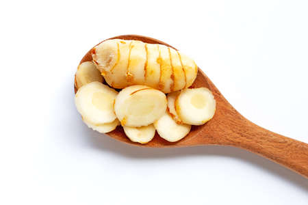 Lengkuas or Alpinia galanga, an East Asian cuisines, shots on isolated white background.