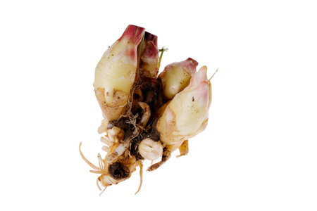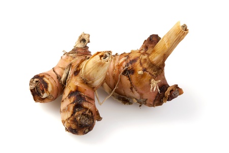 rhizome of galangal on white background