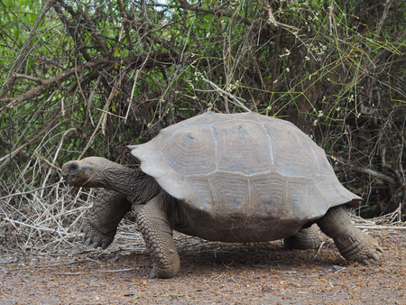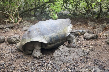 Giant turtle walking on Isla Isabela, Galapagos, Ecuador