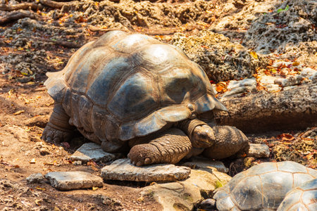 Aldabra giant tortoise on Prison island, Zanzibar in Tanzania