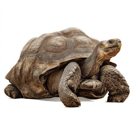 This high-quality image features an isolated giant tortoise, showcasing intricate details of its shell and body. Ideal for nature projects.