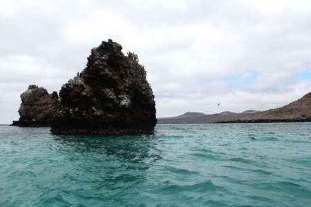 Rock with sea birds off the coast of Galapagos Isabela island, Ecuador