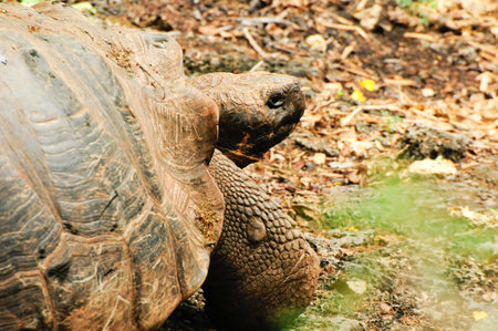 A giant Seychelles turtle in Mauritius close-up