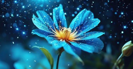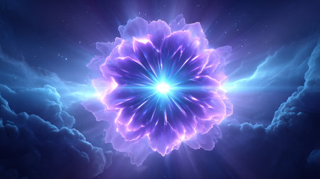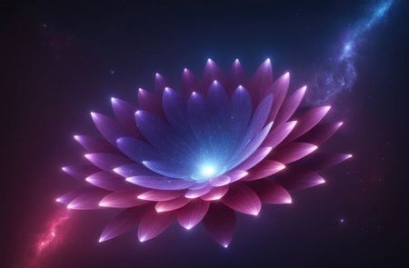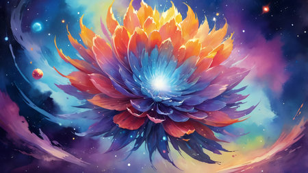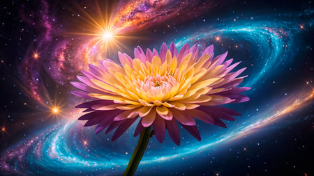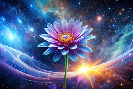 AI Generated. Celestial Flower Glowing In Cosmic Night Sky