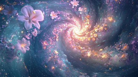 AI Generated. Whispers of floral auroras swirling in a cosmic garden
