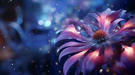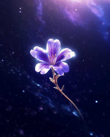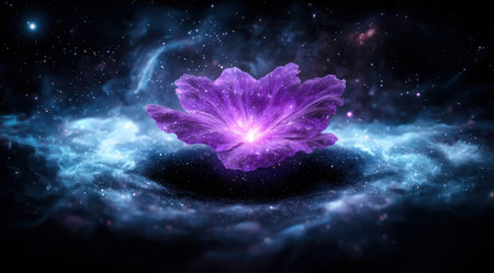 a beautiful scifi inspired wallpaper of a violet flower in space, ai generated image