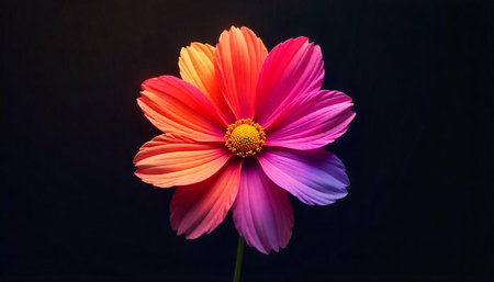 Radiant flower with vibrant gradients isolated against dark backdrop