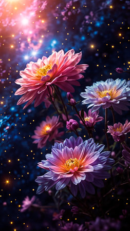 Ethereal Night Sky with Dreamy Flowers and Stars in a Cosmic Garden