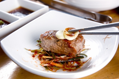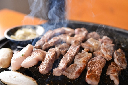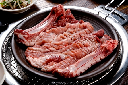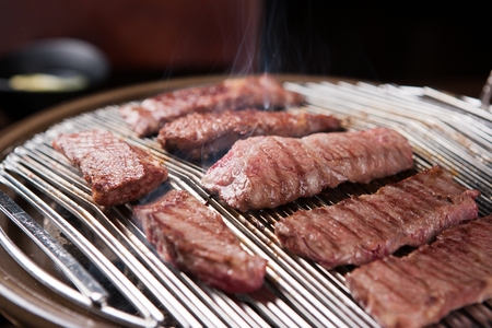 Korean Style Barbecue Grill BBQ rare meat with soft focus
