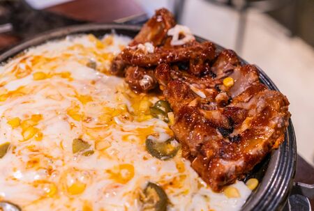 Korean Spicy barbecue Pork Ribs with Cheese.