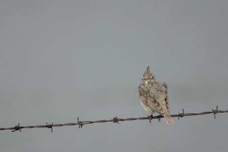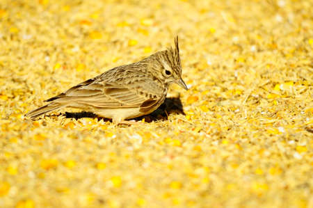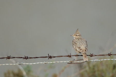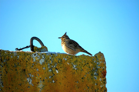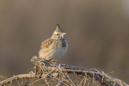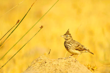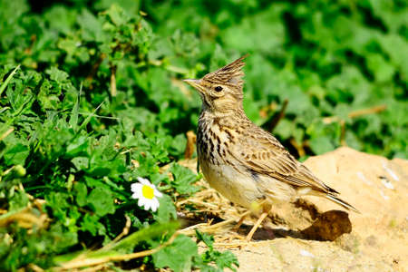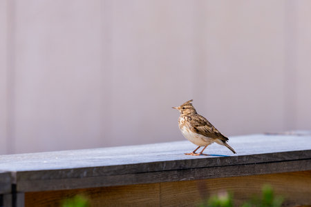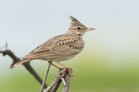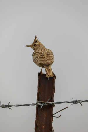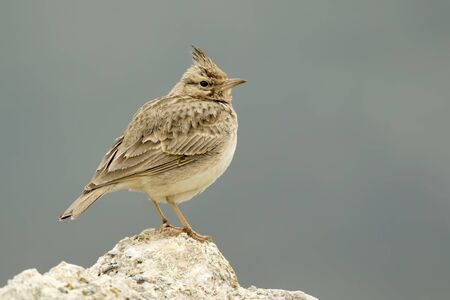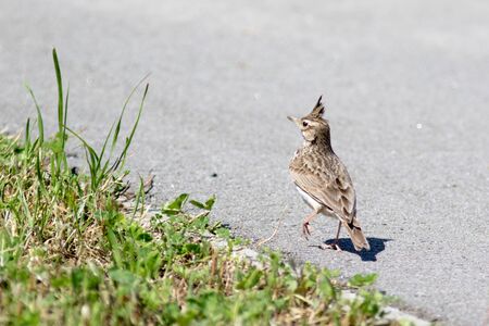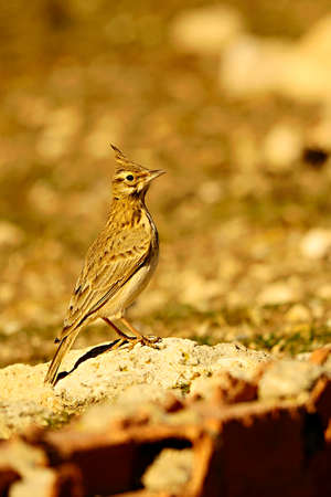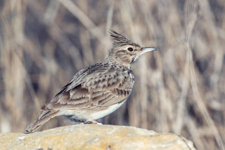 common crested lark. Galerida cristata. A songbird with a crest on its head. side view.