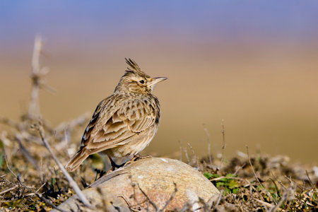 bird looking around in woodland, Crested Lark, Galerida cristata