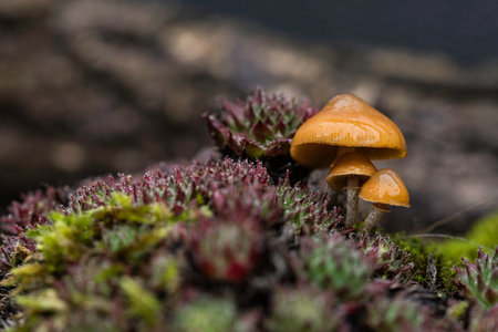 Mushrooms growing in the forest, close-up macro photography