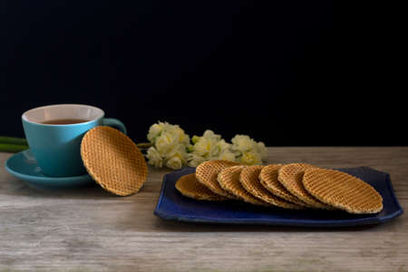 Dutch Waffles with Tea and Flowers - Selective Focus