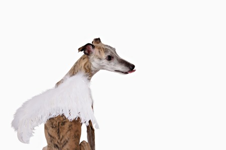 GREYHOUND STOOD ON WHITE BACKGROUND