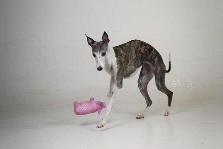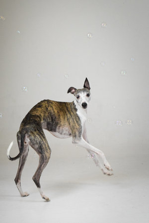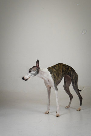 Portrait of a greyhound dog. handsome whippet in a photo studio