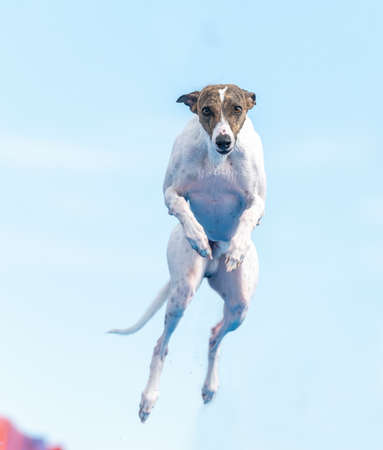 Flying moment of Italian Greyhound in the field on lure coursing competition