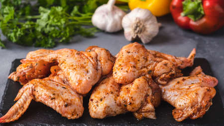Raw marinated chicken wings with spices.
