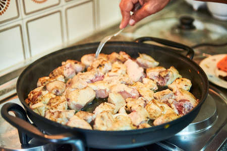 Garlic chicken preparation in the pan