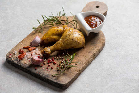 chicken legs with barbeque sauce pepper salt and rosemary