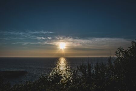The sun over the coast from the rocks