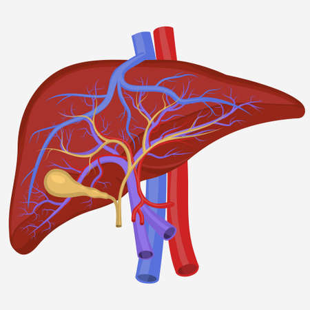 Human liver internal section, digestive system illustration, medical anatomical diagram. Vector