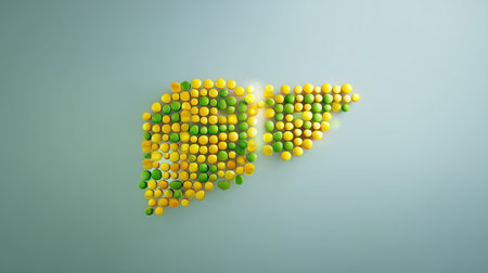 healthcare professional showcases a liver model highlighting its intricate structure and blood vessels while holding a container of medications