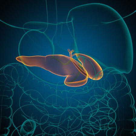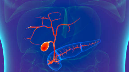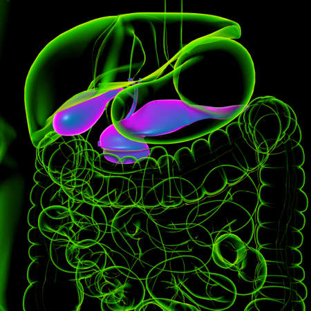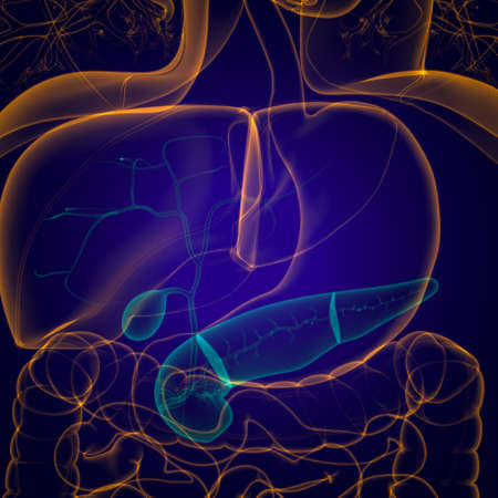 3D Illustration Concept of Human Internal Organs Pancreas with Gallbladder Anatomy