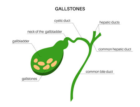 Human gallbladder with a description. Anatomy vector flat illustration. White background.