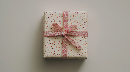 A wrapped present sits on a neutral background, tied with a ribbon, for a special occasion.