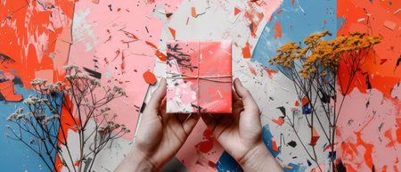 Hands Holding Beautifully Wrapped Gift with Floral Pattern, Perfect for Celebrations and Gift Giving