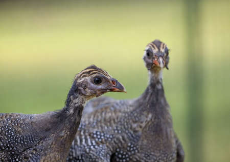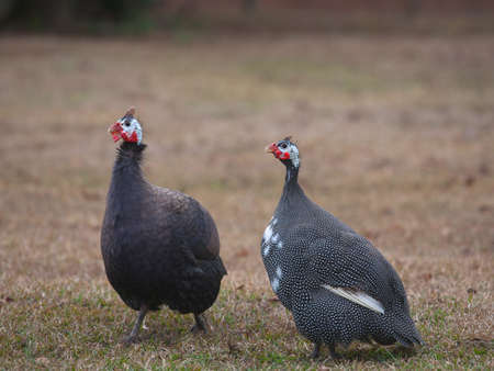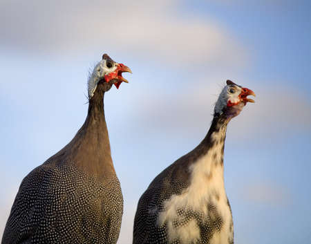 Pair of guineas that are making noise at the same time